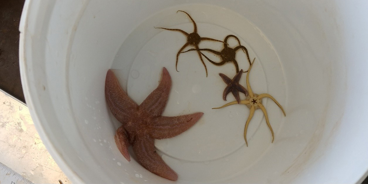 Among others, we have also met some nice starfish, brittle stars and sea urchins today (in the pictures below)!