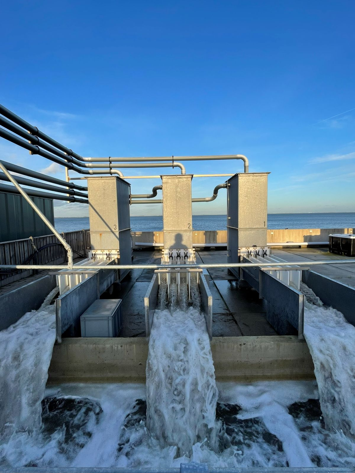 The researchers found that after 63 days of heavy flow, Xiriton is as strong as concrete alternatives such as those made with Roman cement. In the so-called Fast Flow Fume (photo), for example, they unleashed a strong current on pieces of Xiriton that had been made using coffee cups as moulds, in an enhanced erosion experiment to test the adjustability of the material lifetime. That was the task of Jente van Leeuwe, then a master's student in Earth & Environment at WUR, now a PhD student at NIOZ. ‘We used those coffee cups to place the material in the flow instead of having the flow go over the structure, like with tiles.’