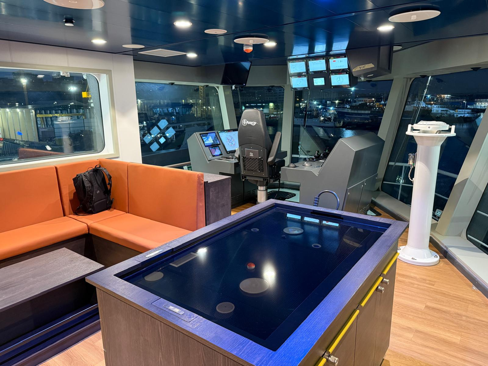 The result of the adjusting trials is good and all equipment is working as it should be. The behavior of the vessel during the several tests was very good. The vessel sails comfortable, and the noise levels are very low during sailing and when using the RIM bowthruster which makes it pleasant when in operation. This will all be checked, measured and validated during the official seatrials which will be commenced soon.